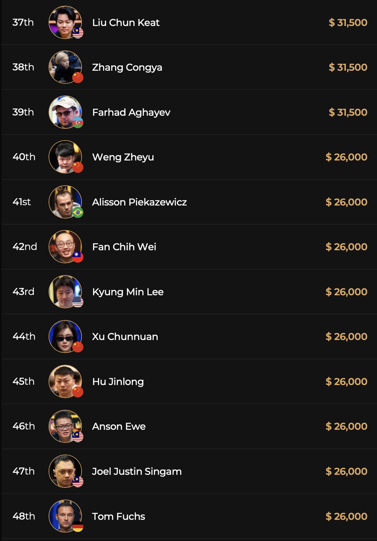 Die verbleibenden und bisherigen Payouts im T1 Main Event:
