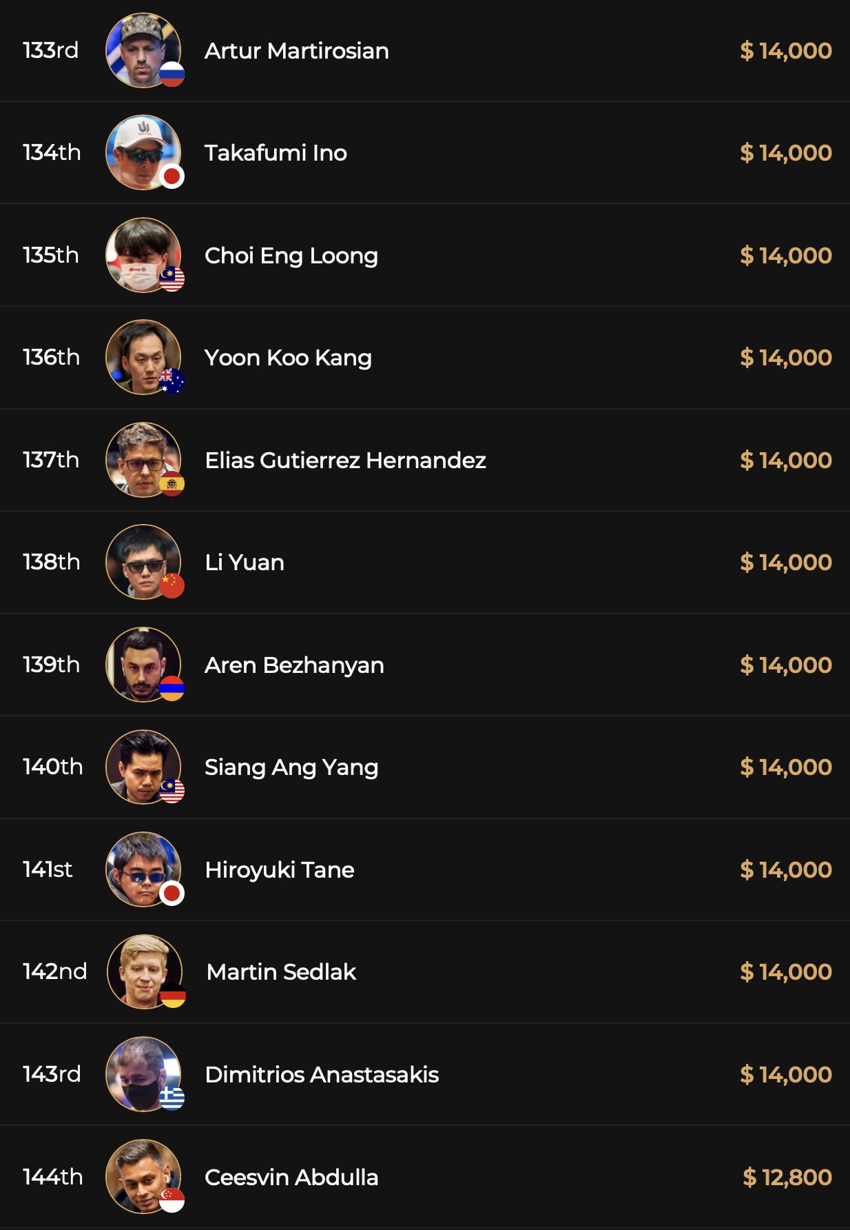 Im $15k Triton ONE High Roller Event waren deutlich mehr der auf die anschließende Triton SHRS Jeju wartenden Super High Roller vertreten als in der „günstigere“ T1 Events. Insgesamt 213 Teilnahmen gab es am Starttag 1A, der bis zum Erreichen von 40 Spielern im Level 15 bei Blinds von 10k/25k-25k gespielt wurde.