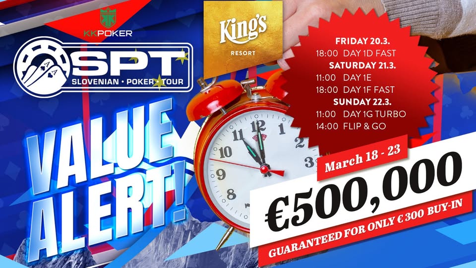 Im King’s Resort in Rozvadov ist diese Woche das €300 Slovenian Poker Tour KK Half Million Master powered by KKPoker mit einer €500.000 Garantie gestartet. Die Top 10 Spieler des Events werden außerdem ein Ticket-Package im Wert von €3.000 für das King’s Million European Championship Festival im Herbst erhalten.