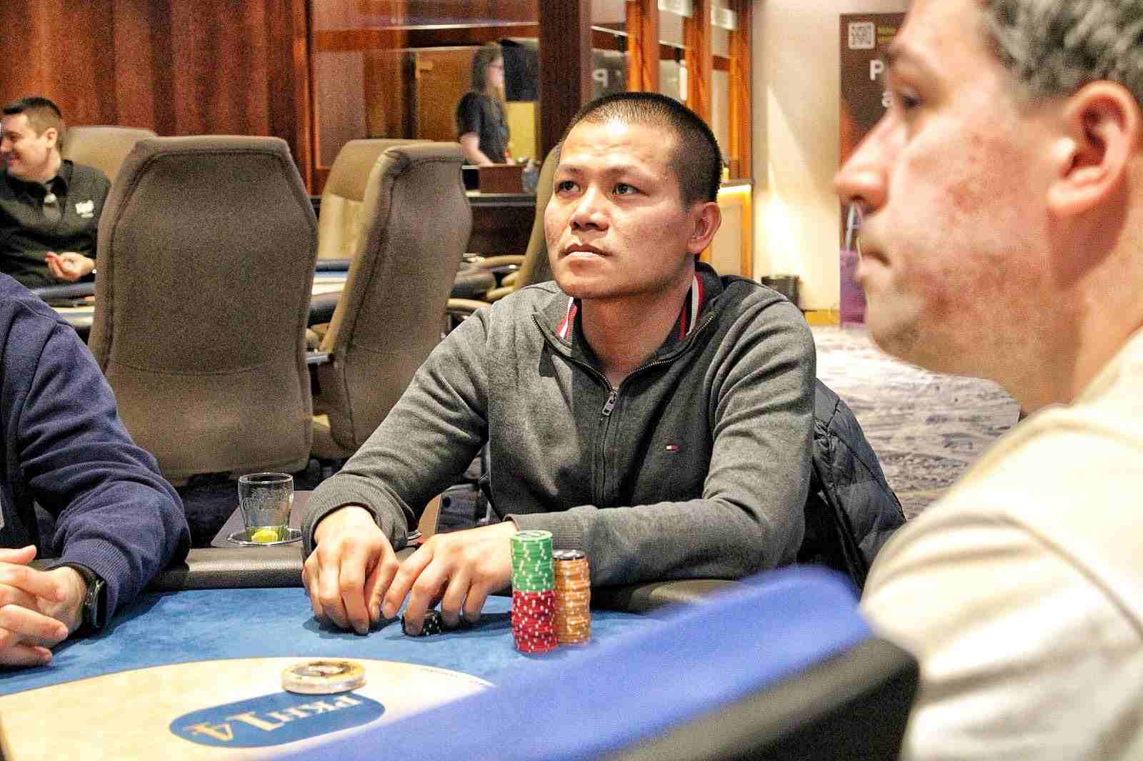 Nachdem der erste Starttag am Freitag 68 Entries verzeichnen konnte, kamen am gestrigen Samstag weitere 108 Entries hinzu (71+37 Re-Entries). Somit waren es 15 Spieler, die den Tag überlebten und ihre Chips für heute Nachmittag eintüten konnten. Der größte Stack ging dabei mit 908.000 Chips für den Chinesen Quan Zhang in die Tüte.