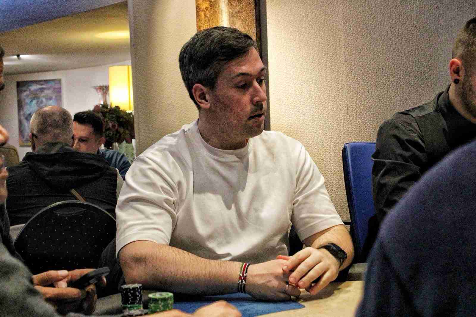 Am Abend fanden sich dann noch einmal 124 Spieler für ein Turnier zusammen, und zwar das Saturday Night Turbo mit einer €15.000 Garantie. Diese konnte auch dank der 35 Re-Entries geknackt werden und es wurde um einen €17.362 Preispool gespielt.
