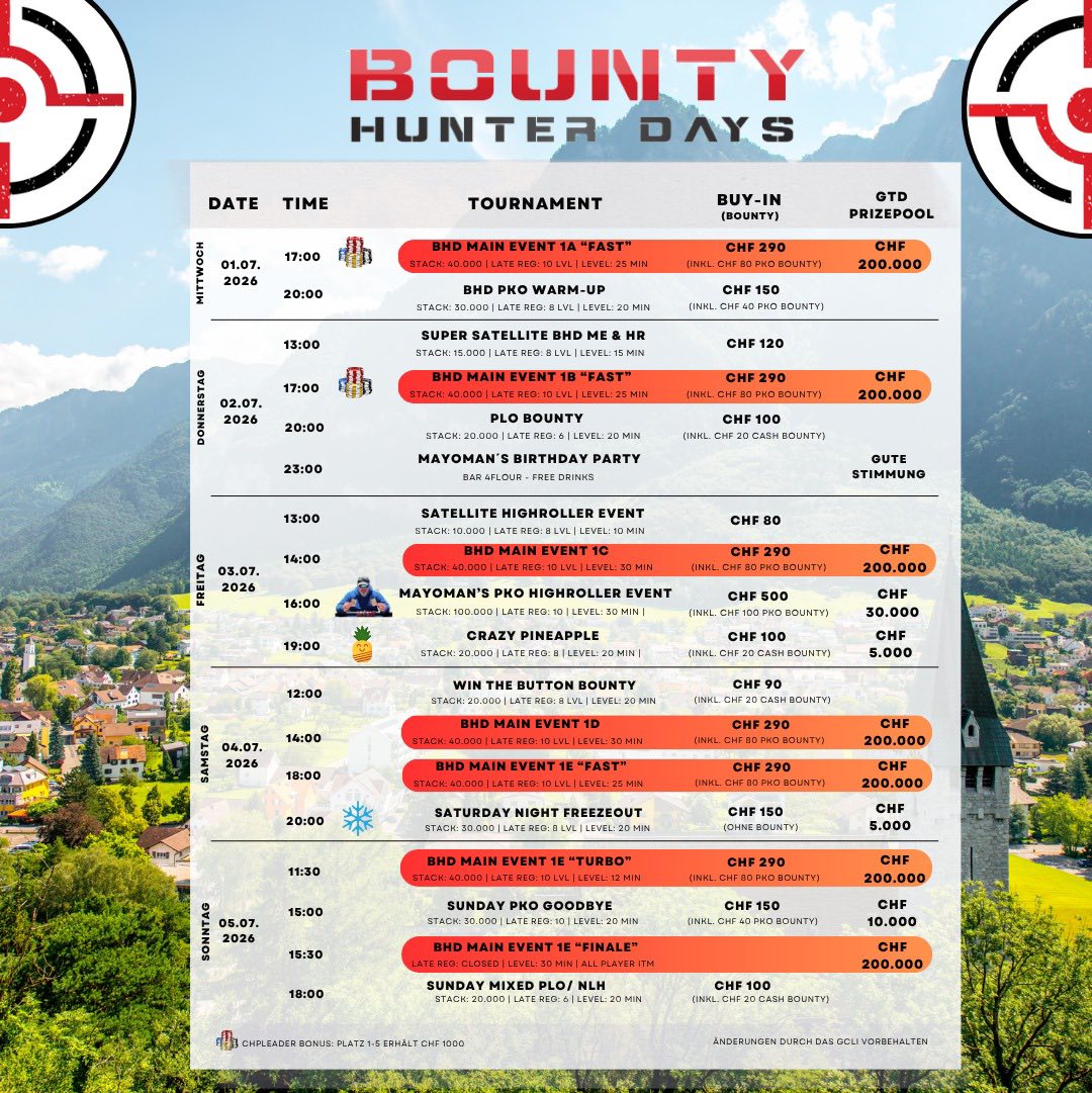 Bisher sind erst CHF 30.375 von den CHF 75.000 Garantie eingesammelt, weniger als die Hälfte. Es steht nur noch ein Startflight heute um 12:00 Uhr aus – wird das Turnier mit Overlay in Tag 2 gehen?