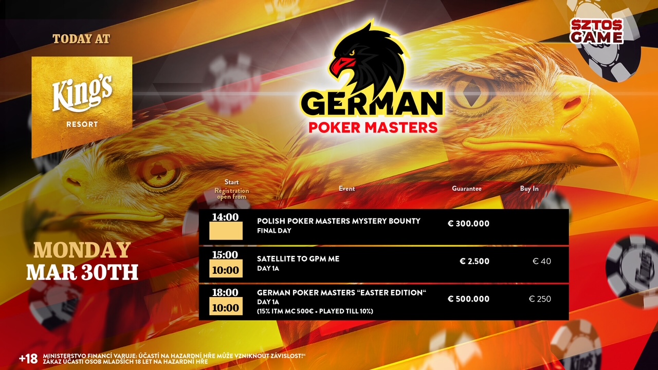 Beim Polish Poker Masters Festival powered by SZTOS.Game gab es gestern King’s Resort in Rozvadov das High Roller. Im King’s Casino Prag wurde das Sunday Knockout gespielt.
