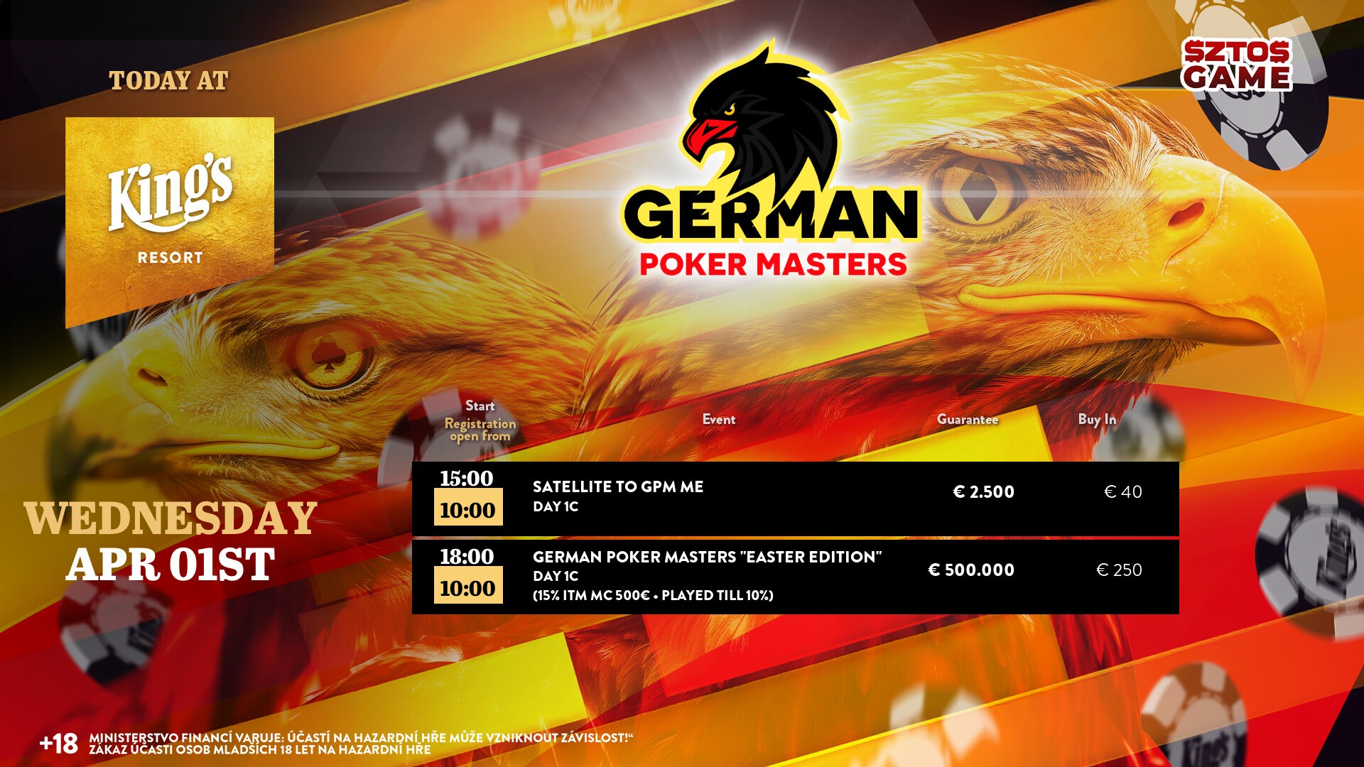 Über Ostern bestimmen die German Poker Masters die Action im King’s Resort in Rozvadov, während gleichzeitig in Prag die WSOP Europe läuft.
