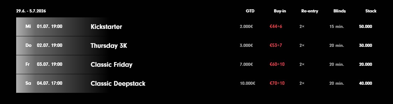 Als Auftakt wurde gestern das BHD PKO Warm Up ausgetragen. 159 (116+43) Entrys bezahlten das Startgeld von €60+40+20 und pulverisierten damit die Garantie von €10.000.