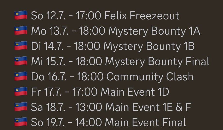 Vom 12. – 19. April 2025 finden im GC Pokerroom des Grand Casino Liechtenstein das Community Poker Festival Liechtenstein statt.
