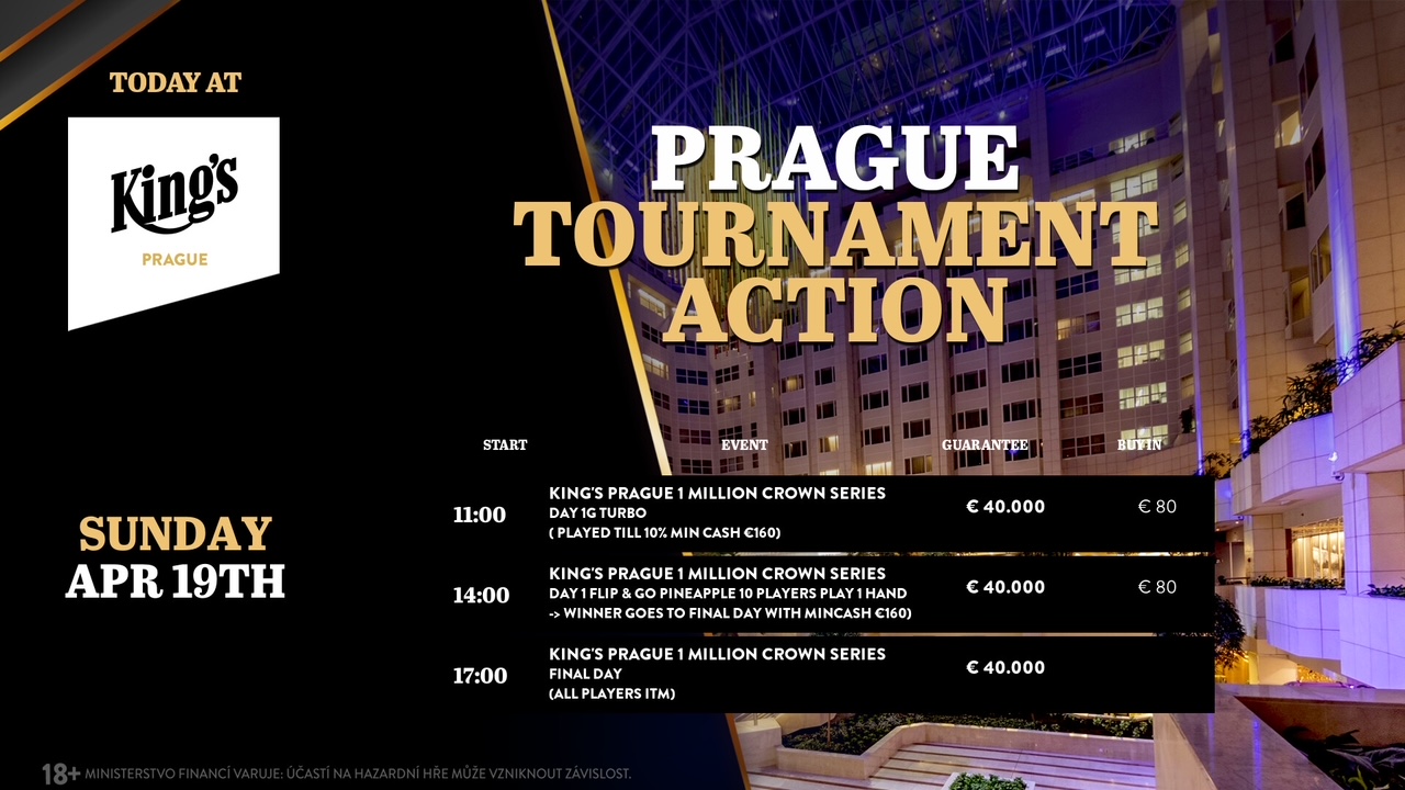Im King’s Casino Prag wurde gestern der sechste von acht Startflights im King’s Prag 1 Million Crown Series gespielt!