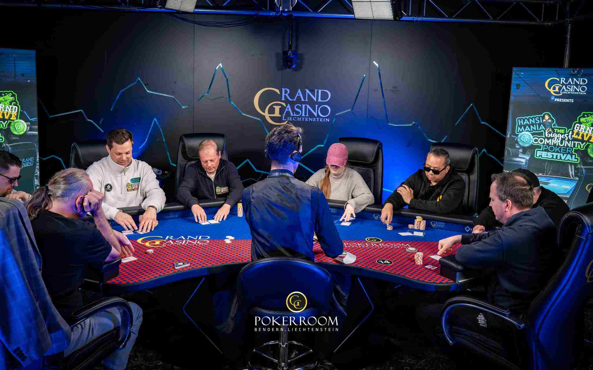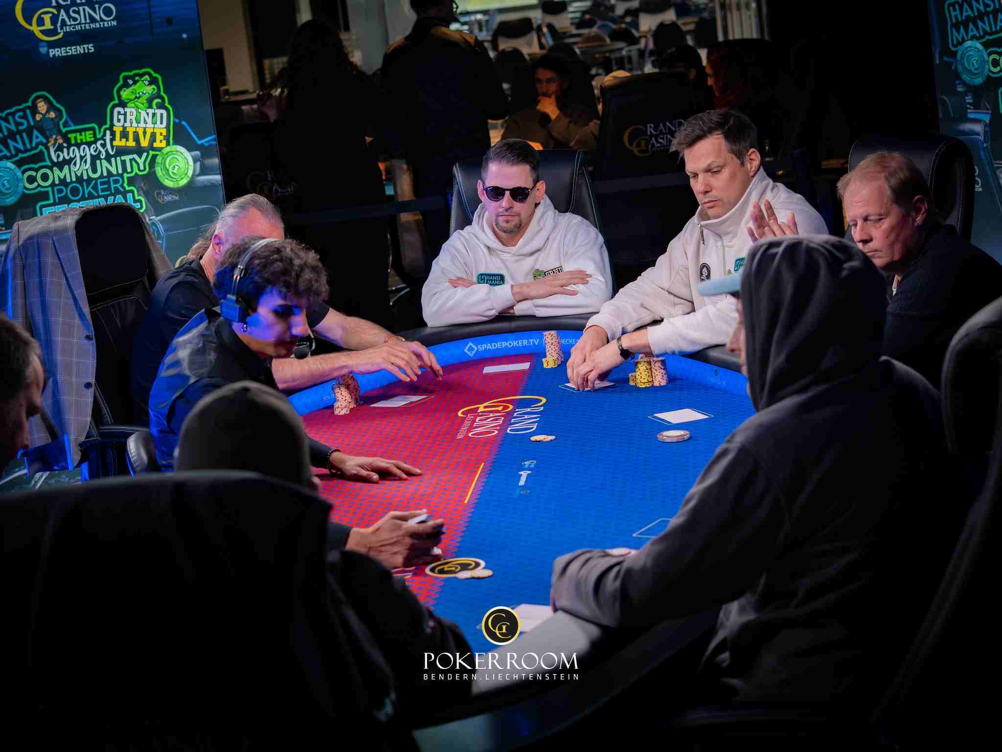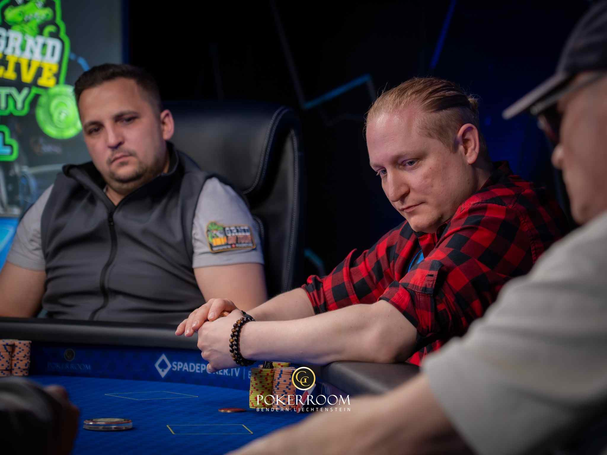 Zu siebt hatten die verbleibenden Teilnehmer*innen allerdings anderes im Sinn und einigten sich auf einen Bubble-Deal für den 180 CHF aus dem Preispool genommen wurden. Auf Rang 6 konnte Lokalmatadorin Kathrin Wolfinger (LIE) ihrer GCLI-Bankroll weitere 345 CHF hinzufügen, für Björn Kloster (GER) sollte es auf Rang 5 am Ende 440 CHF geben. Mit dem Bustout von Kristina Scherer (GER) mit 570 CHF auf Rang 4, einigte sich die letzten drei Spieler auf einen Deal.