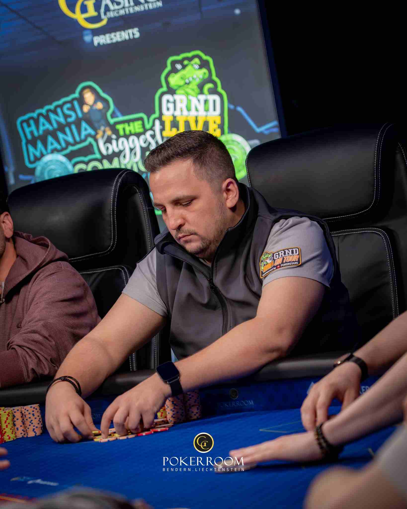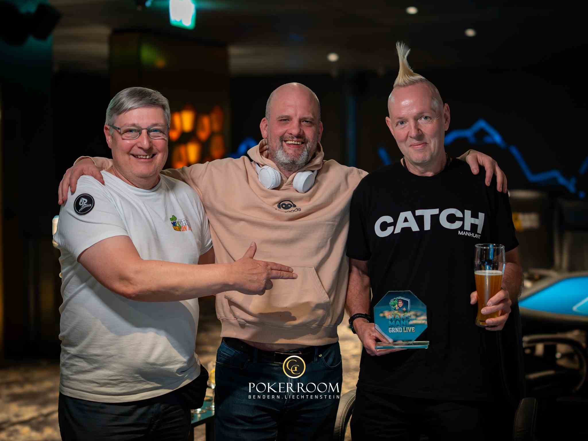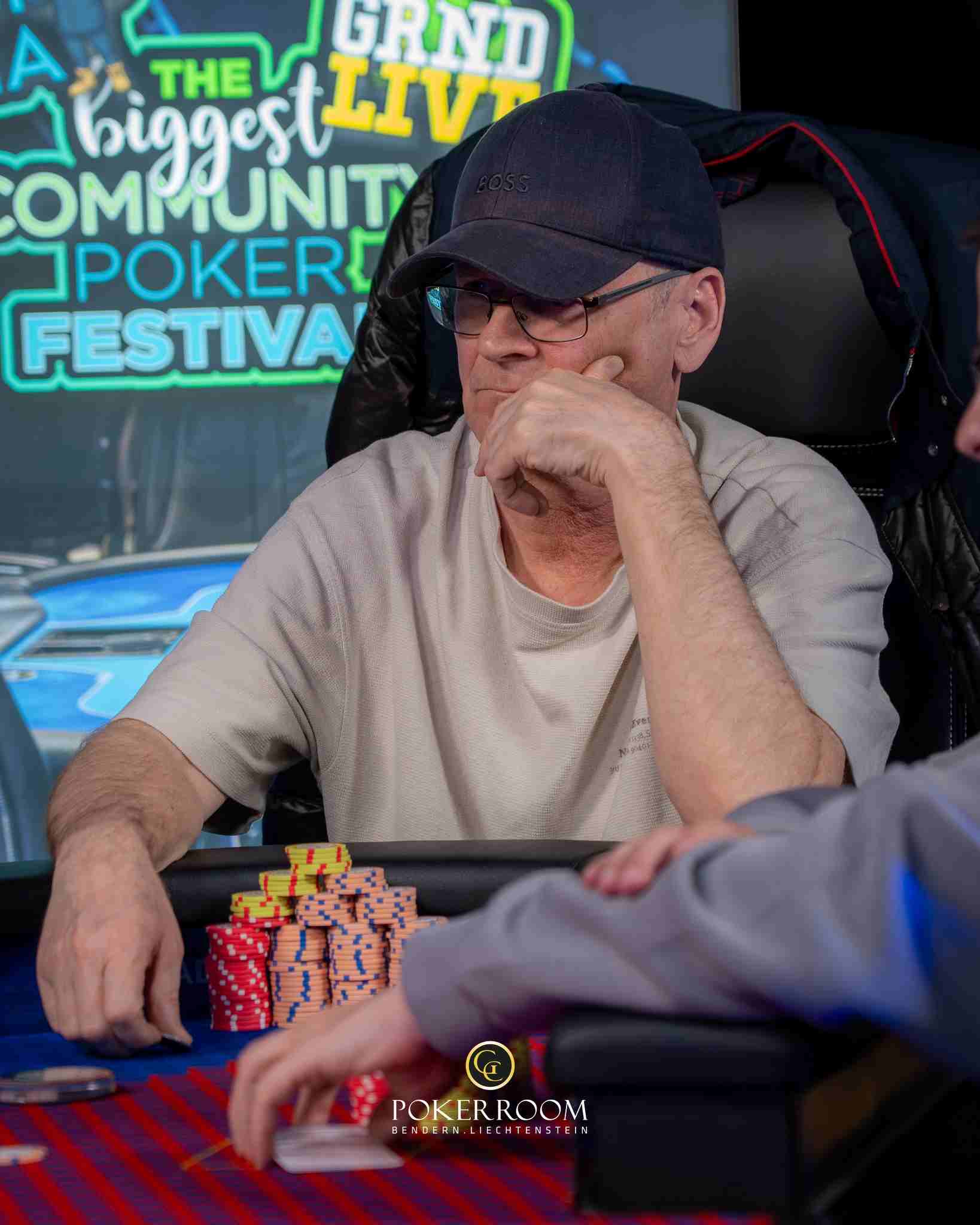 Zu siebt hatten die verbleibenden Teilnehmer*innen allerdings anderes im Sinn und einigten sich auf einen Bubble-Deal für den 180 CHF aus dem Preispool genommen wurden. Auf Rang 6 konnte Lokalmatadorin Kathrin Wolfinger (LIE) ihrer GCLI-Bankroll weitere 345 CHF hinzufügen, für Björn Kloster (GER) sollte es auf Rang 5 am Ende 440 CHF geben. Mit dem Bustout von Kristina Scherer (GER) mit 570 CHF auf Rang 4, einigte sich die letzten drei Spieler auf einen Deal.