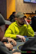In Flight 1C gab es letztmalig den ansehnlichen €150-Rabatt auf das Startgeld. Für nur €315+€35 konnte man um mindestens garantierte €400.000 im Preispool. Das ließen sich 217 Entrys nicht entgehen und machten der dritten der zehn Flights zum bislang bestbesuchten. Bei jeweils 10% Tag-2-Qualifikant*innen sollten aus diesem Flight somit 22 den Sprung in tag 2 schaffen. Damit konnten sie auch direkt €600 Early Payout kassieren.