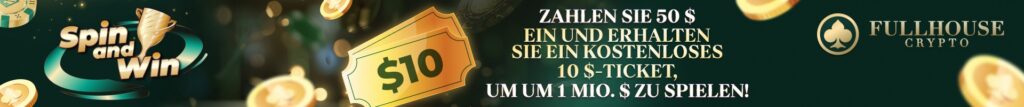 FullHouse Crypto dreht derzeit richtig am Rad! Die Crypto Poker Plattform boostet den maximalen Preispool im Rahmen der „Spin and Win“ Promotion von $100.000 auf $1.000.000! Und das Beste daran – ihr könnt als neue Spieler des schnell wachsenden Online Poker Rooms direkt ein kostenlosen $10 Ticket für den richtigen Dreh mitnehmen!