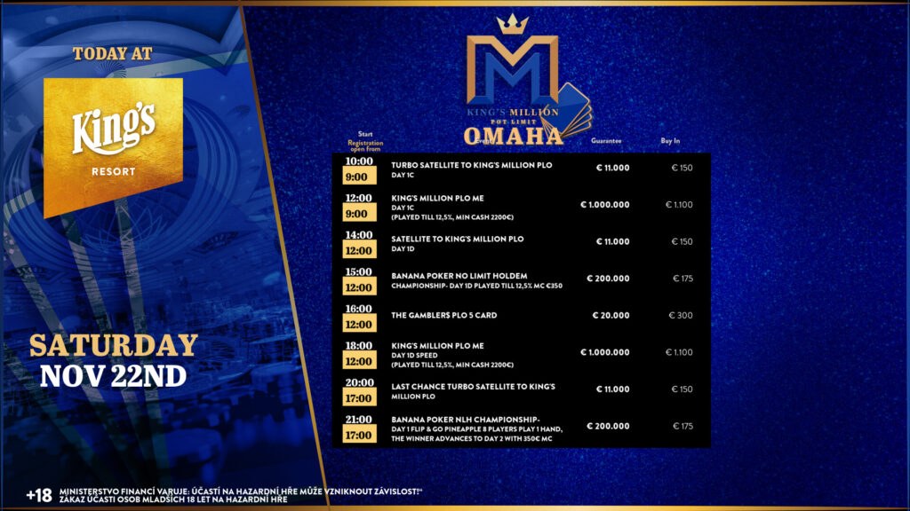 Im King’s Resort Rozvadov läuft momentan das King’s Million PLO Festival und am gestrigen Freitag fiel der Startschuss für das €1.100 Main Event mit gleich zwei Starttagen.