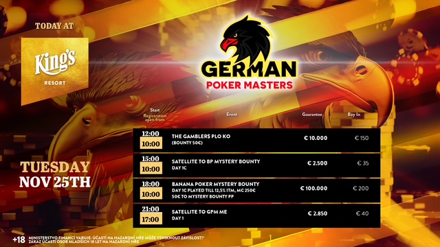 Das King’s Million PLO Festival im King’s Resort Rozvadov trug am gestrigen Montag das Finale seines €1.100 Main Events aus.