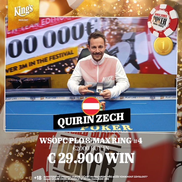 Im spannenden Finale setzte sich Quirin Zech aus Österreich durch und sicherte sich damit nicht nur den größten Anteil des Preisgeldes mit €29.900, sondern auch den begehrten goldenen WSOPC-Ring.