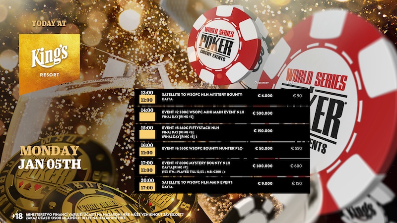 Beim World Series Of Poker Circuit (WSOPC) im King’s Resort Rozvadov standen gestern gleich drei hochkarätige Turniere im Vordergrund: das €300 Mini Main Event (Event #2), das €2.000 PLO 8-Max (Event #4), sowie das €660 FiftyStack NLH (Event #5).