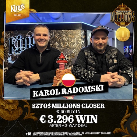 Der Pole Karol Radomski setzte sich durch und sicherte sich €3.296. Boris Rene Glay aus Frankreich belegte Rang zwei und erhielt €3.147. Damit ging das abschließende Event des Festivals nach Polen und rundete die $ZTO$-Serie mit einem internationalen Siegerbild ab.