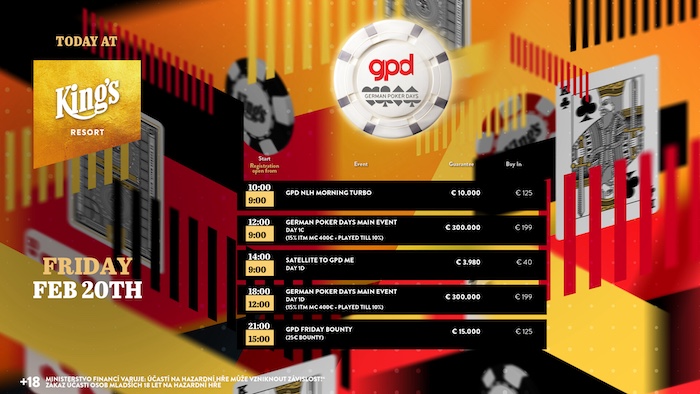 Im King’s Resort Rozvadov stand am gestrigen Donnerstag der zweite reguläre Starttag (Flight 1B) des €199 Main Events im Rahmen der German Poker Days-Festivalwoche auf dem Turnierplan.