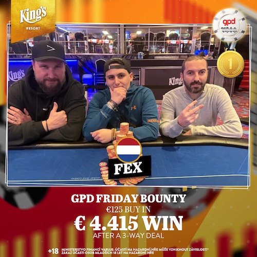 Auch hier kam es im Finale zu einer Einigung. Zu dritt wurde gedealt, ehe der Niederländer „Fex“ offiziell als Sieger feststand. Für ihn war es ein besonders erfolgreicher Tag, nachdem er bereits am Morgen im Turbo-Event Platz drei belegt hatte. Für den offiziellen Turniersieg wurden ihm €4.415 zugesprochen – ein rundum gelungener Auftritt in der Poker-Arena von Rozvadov.