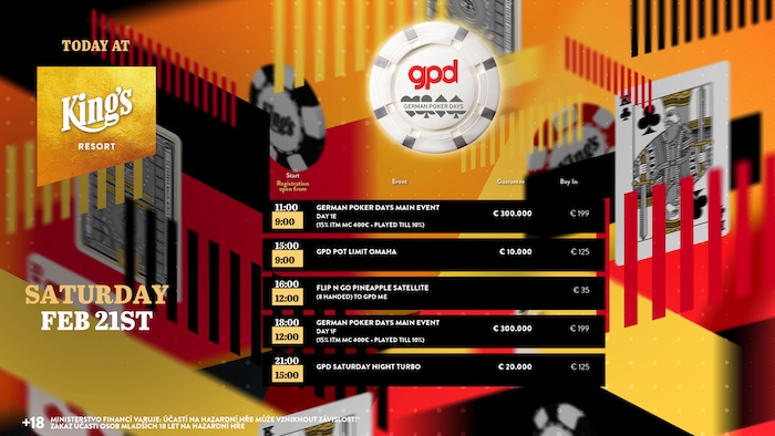 Im King’s Resort Rozvadov laufen die German Poker Days weiter auf Hochtouren – und zur Halbzeit des €199 Main Events ist klar: Das Wochenende dürfte noch einmal für einen massiven Schub sorgen.