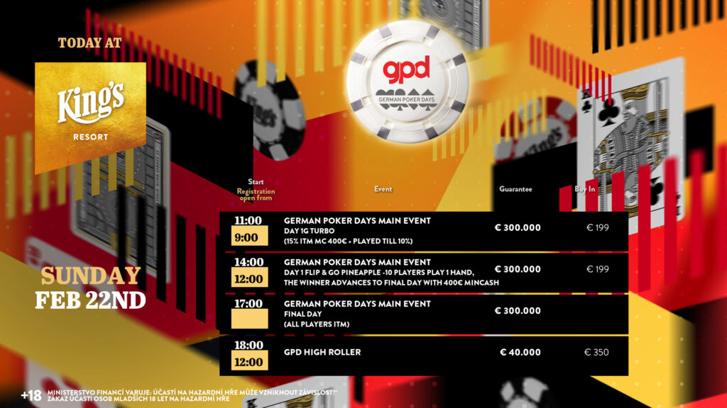 Das €199 Main Event der German Poker Days wird mit insgesamt sieben regulären Starttagen plus einem zusätzlichen Flip-&-Go-Flight gespielt und garantiert €300.000 im Preispool.