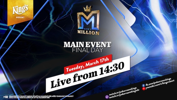 Am gestrigen Tag 3 wurde das Feld von ursprünglich 90 verbliebenen Spielern auf die letzten neun Teilnehmer heruntergespielt. Alle Finalisten haben bereits €14.100 sicher – darin enthalten ist auch ein Ticket-Package im Wert von €3.000 für die King’s Million European Championship.