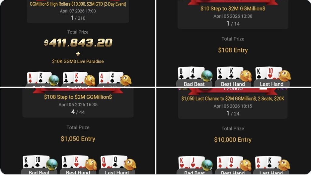 Eine dieser Geschichten, die man im Poker immer wieder hört – aber selten in dieser Dimension: Ein Spieler aus Österreich hat auf GGPoker aus gerade einmal $10 satte $411.843 gemacht und sich damit den Titel im $10.000 GGMillion$ High Roller gesichert. Obendrauf gab es noch ein $10.000 WSOP Paradise Live-Package.