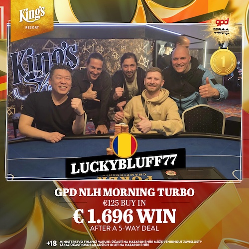 Bereits um 10:00 Uhr startete das €125 GPD NLH Morning Turbo (€10.000 GTD). 71 Spieler sowie 20 Re-Entries nahmen teil, womit die Garantie verpasst wurde.