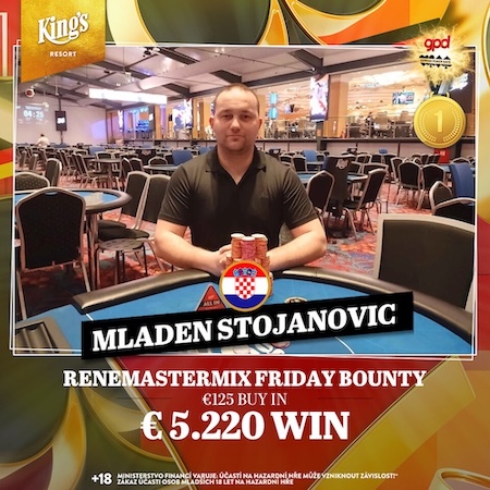 Am Abend folgte das €125 Renemastermix Friday Bounty (€15.000 GTD). 283 Entries, darunter 64 Re-Entries, sorgten für einen Preispool von €29.715 und damit nahezu eine Verdopplung der Garantie.