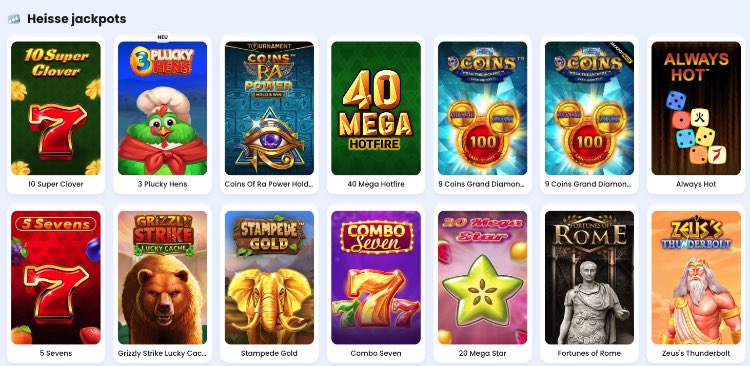 | Spielauswahl | Online Spielautomaten, Jackpotslots, Sportwetten, Live Casino Spiele, virtueller Sport, Tischspiele, Bingo, Rubbellose uvm. |