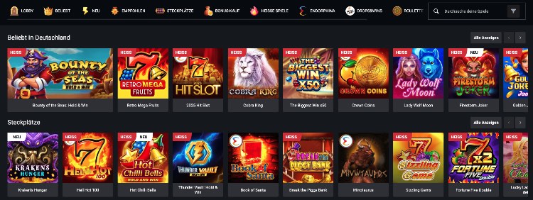 | Spielauswahl | Plinko Casino, Online Spielautomaten, Jackpots, Sportwetten, Live Spiele, Tischspiele, Crash Games uvm. |