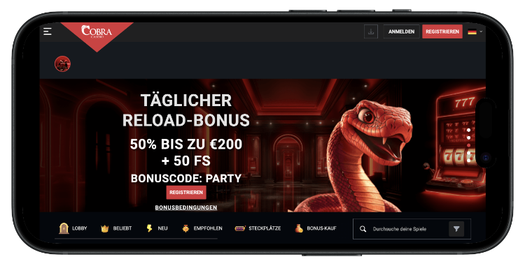 | Cobra Casino | Willkommenspaket bis 3.000 € + 300 Freispiele | 92 % |