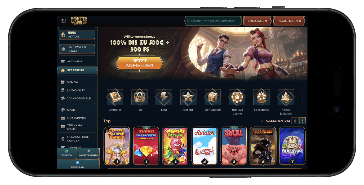Geradezu magische Freispielpreise erwarten dich im Monsterwin Casino, weshalb der Anbieter auf dem dritten Platz ins Ziel kam. Das Monsterwin Casino gilt als einer von Knossis Casino Favoriten, denn der Anbieter legt mit 200 Freispielen sowie einem 100 % Bonus bis zu 500 Euro bereits einen echten Traumstart hin. Dazu kommen zwei weitere Reload Angebote, die ebenfalls aus Casino Freispielen bestehen, bzw. von ihnen begleitet werden. Das Monsterwin Casino konnte sich den dritten Platz jedoch auch aufgrund seiner zahlreichen „Extras“ sichern. Dazu gehören unter anderem ein VIP-Programm, Herausforderungen, Turniere uvm.