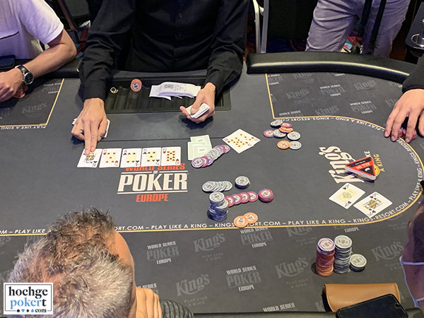 Nun war der ganze Tisch in Aufruhr und alle waren sich einig, dass das All-in für mehr gewesen war als das. Der Floorman wurde gerufen und dann fiel unserer Reporterin Christin Maschmann ein, dass sie die Hand nicht nur mitgeschrieben hatte, sondern auch Fotos gemacht hatte.