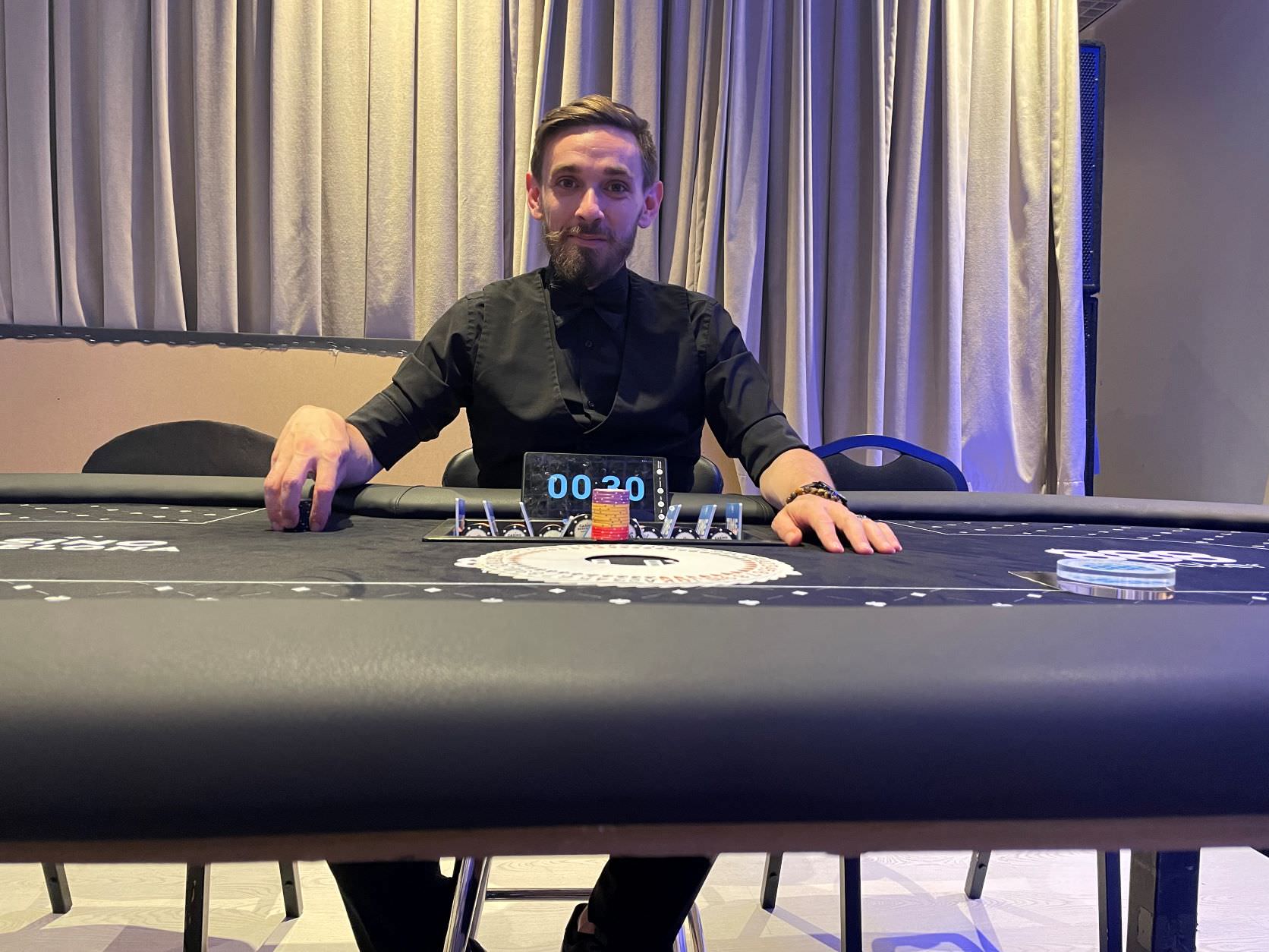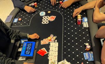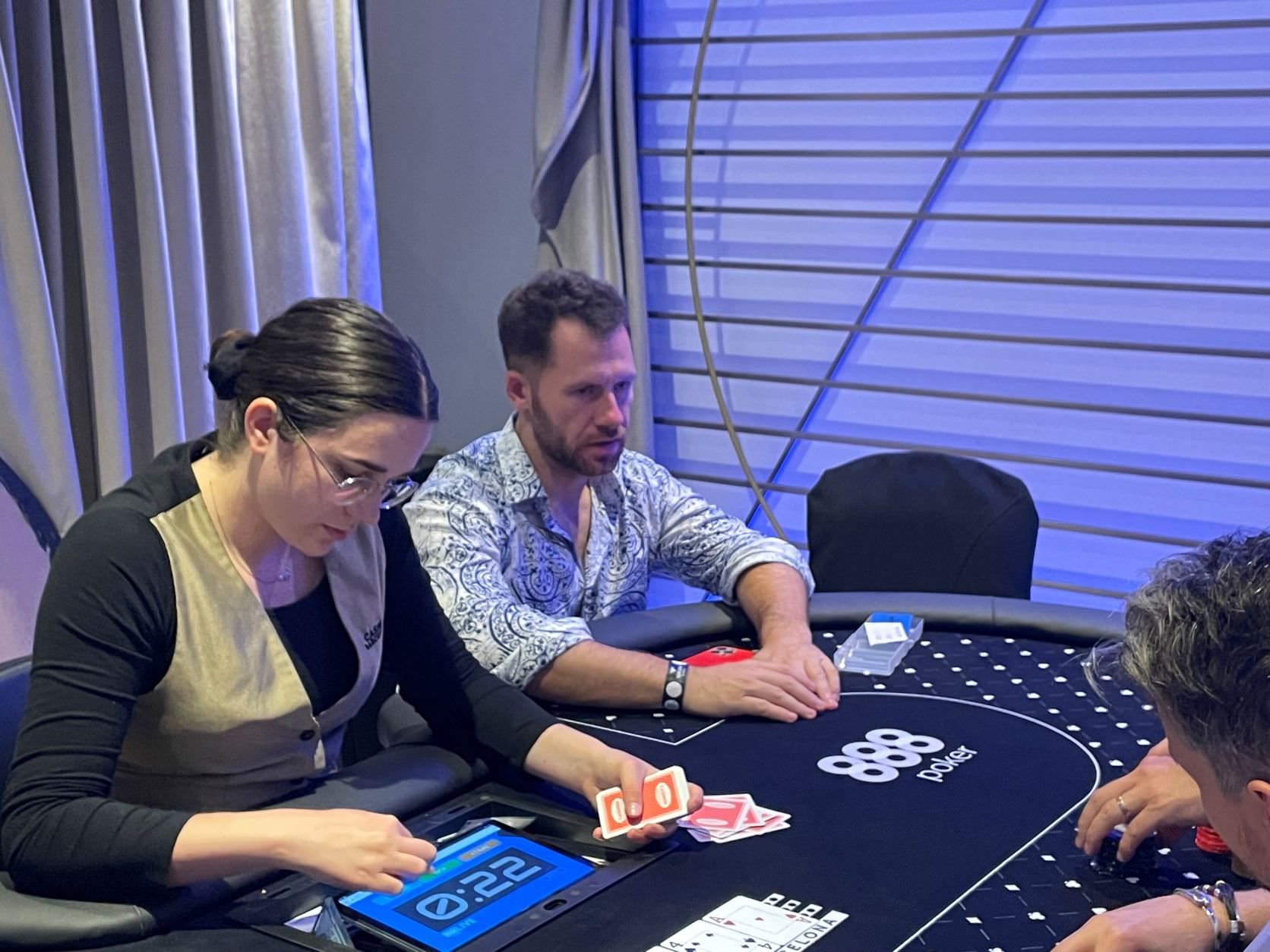 Im BigBlind entscheidt sich Luca Guglielmoni für eine 3-Bet auf 6.500. Blazquez foldet und Dinu entscheidet sich für einen 4-Bet-Jam seiner gesamten 13.600 Chips - Guglielmoni callt.