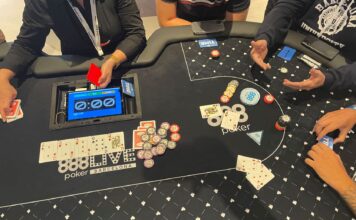 Der Chipleader im Flight 1C wurde in der letzten Hand entschieden ... bei einem Pot von 200.000 Chips übernimmt damit Alejandro De Lucio Sanchez den Chiplead für diesen Starttag und kaum es selbst noch kaum glauben.