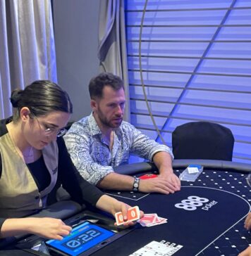 Graciun und Mickelson checken den Flop - die Bet erfolgt durch Diego mit 1.700. Graciun call im BigBlind und Mickelson foldet seine Hand nach der Verwendung einer Timebank-Karte.
