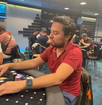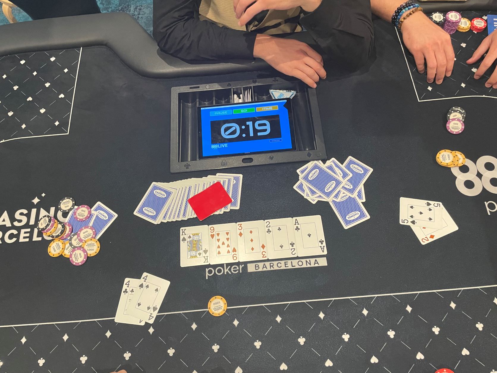 bringt Manuel Jimenez im SB seine letzten 5.100 Chip unter. Die Calls folgen durch Henry Vigil aus UTG +1 sowie Ladislao Battle am Buttton.