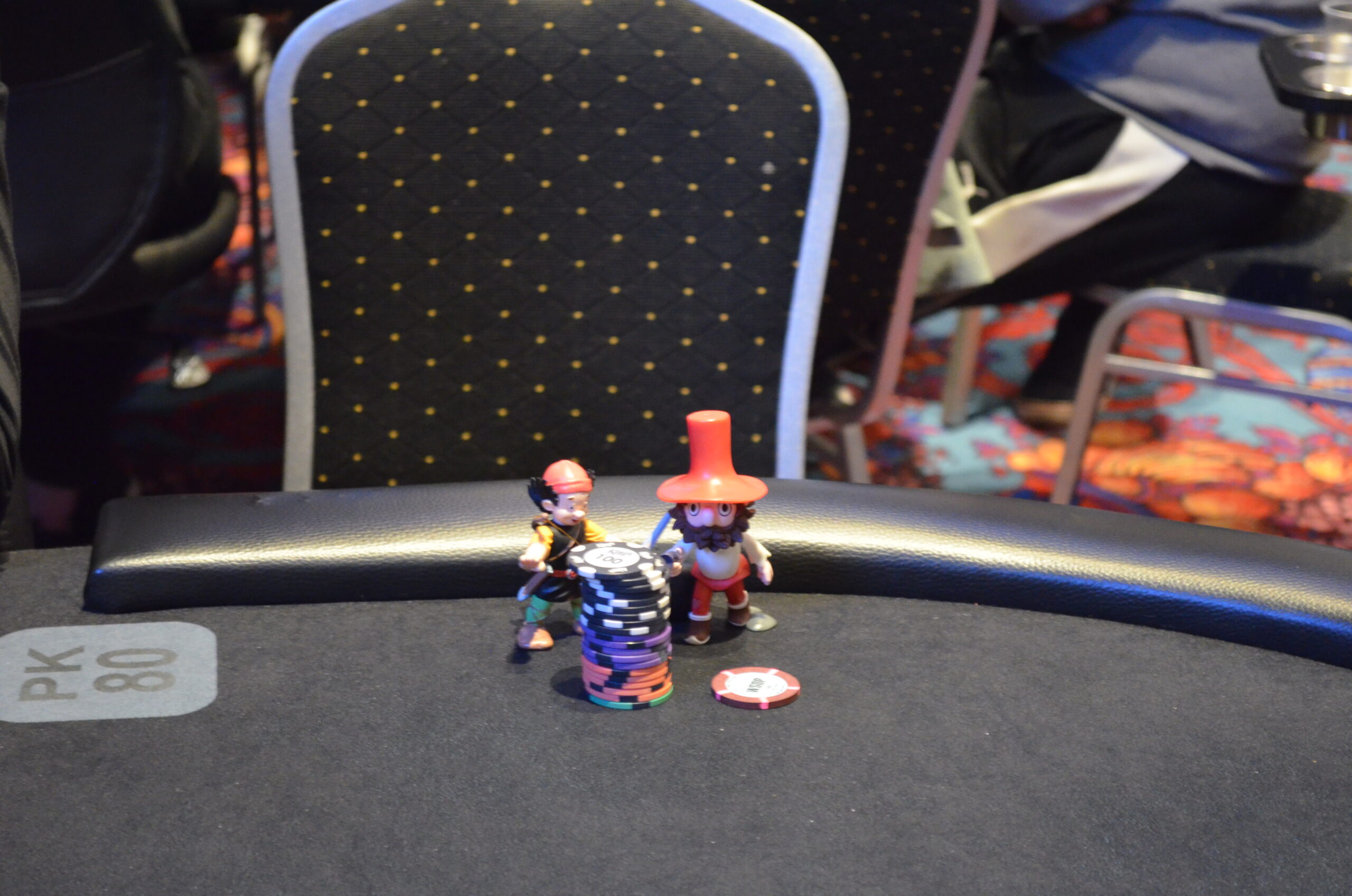 Aktuell sind wir in der Nähe der Bubble von Tag 2 - daher ist momentan alles sehr zäh und es kommt nur ganz selten bis zum Flop ... 24 Spieler left aktuell ...