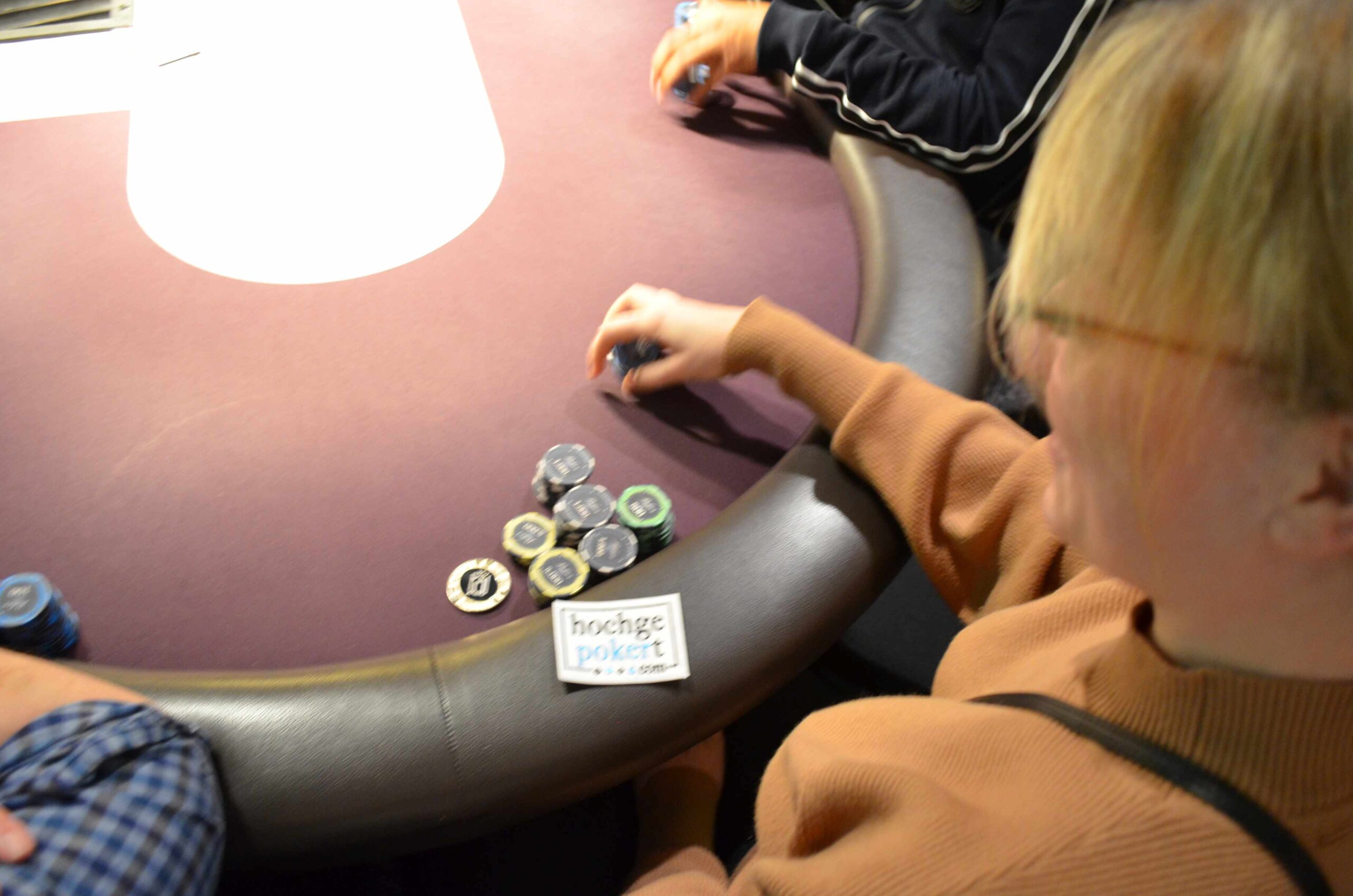 Das 15. und damit letzte Level des Tages ist soeben angebrochen. Das bedeutet die Spielzeit beträgt aktuell noch ca. 12 Minuten und danach wird die Turnier-Uhr angehalten und die Anzahl der noch zu spielenden Hände wird dann ausgelost.