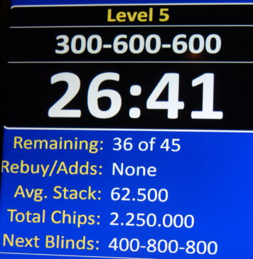 Der etwas shortere Stack, Jürgen F., erhält für seine Leistung nach 2 Spieltagen und insgesamt 39 Entries, die er hinter sich gelassen hat €21.200!