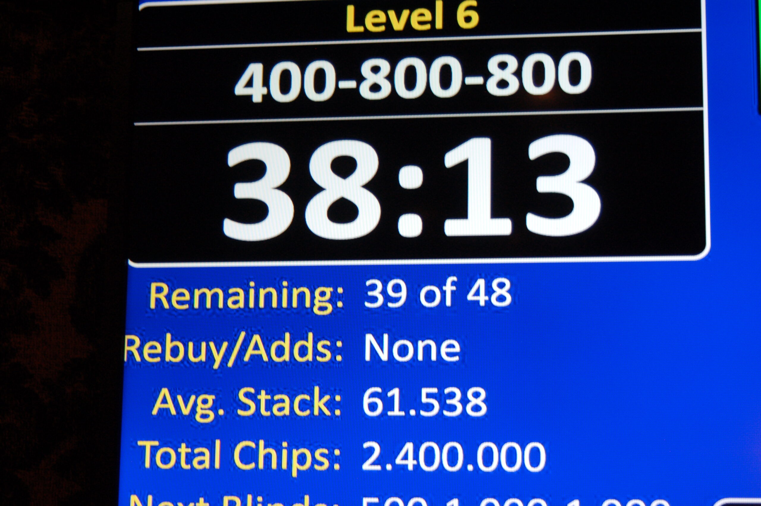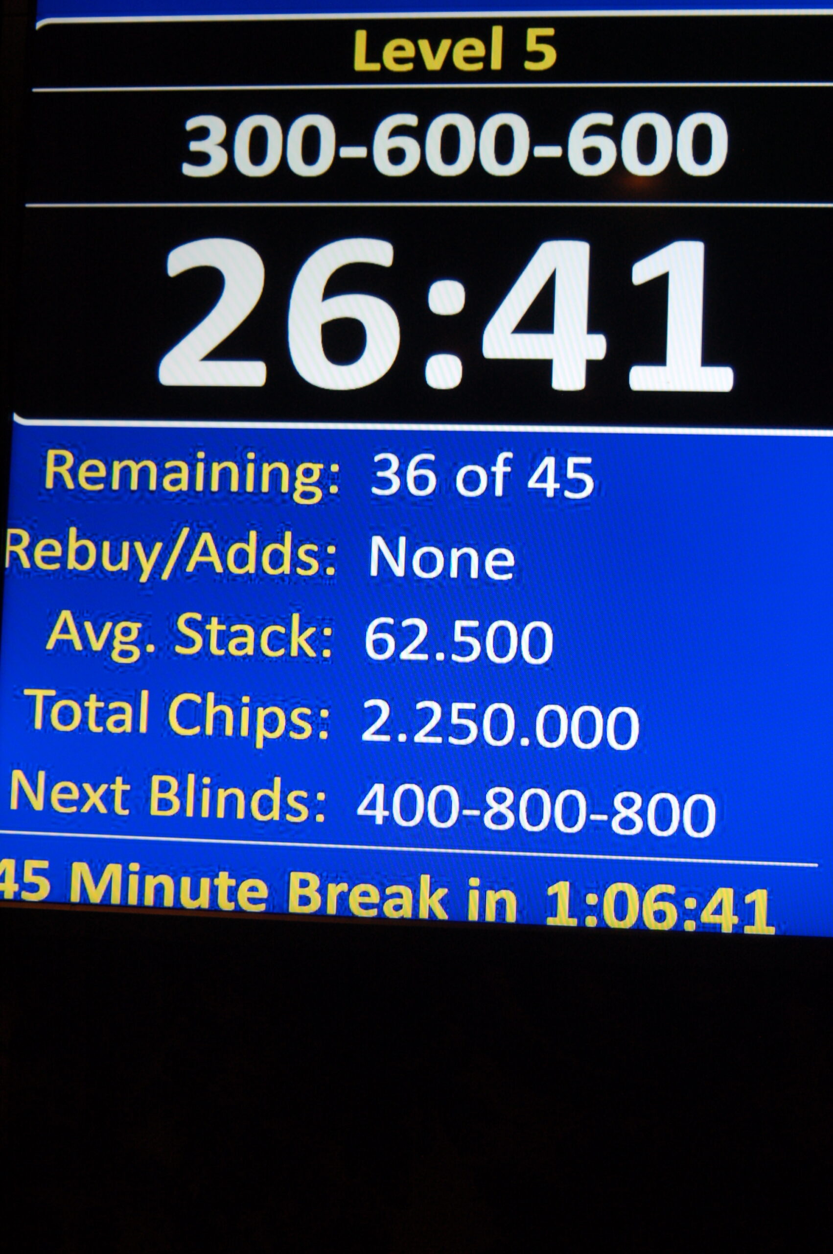 Über ein Satellite Ticket ins Turnier gestartet, war der Hannoveraner Bastian S. einer der ersten Shortstacks im Turnier. Zudem bestand und besteht seine Tischkonkurrenz aus Frank D., Denis D., Rene M. und dem Big Stack Stefan O. - dennoch schafft es der junge Spieler den großen Namen und großen Stacks Stand zu halten und befindet sich mittlerweile im vorletzten Level des Tages. Durchhalten!