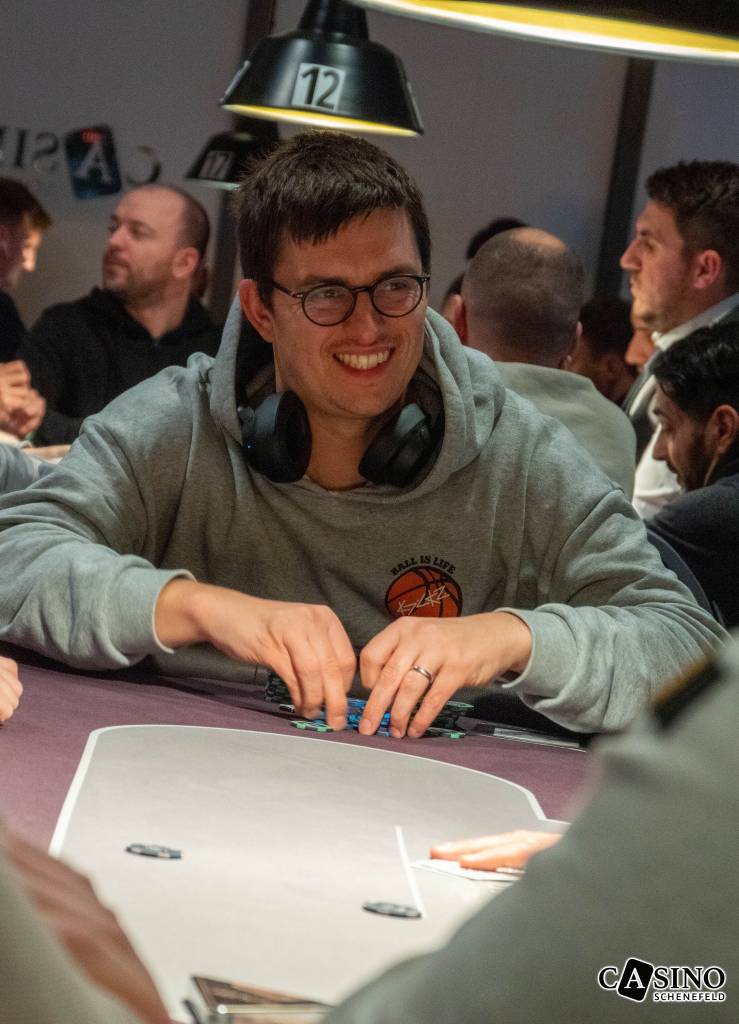 Auch Murat O. legt jetzt sein Pokerface ab und freut sich auf die Chip-Tüte für seinen Stack.