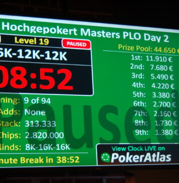 Tag 1a im Hochgepokert Masters Main Event 2024 im Casino Schenefeld ist in den Büchern. Von 80 Total Entries, die an Tag 1a für bereits €40.000 gezahlte Buy-Ins im Preispool sorgten, qualifizierten sich 23 für Tag 2 (Samstag ab 16:00 Uhr). 8 davon über dem Chipaverage von 173.913.