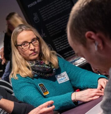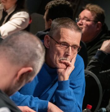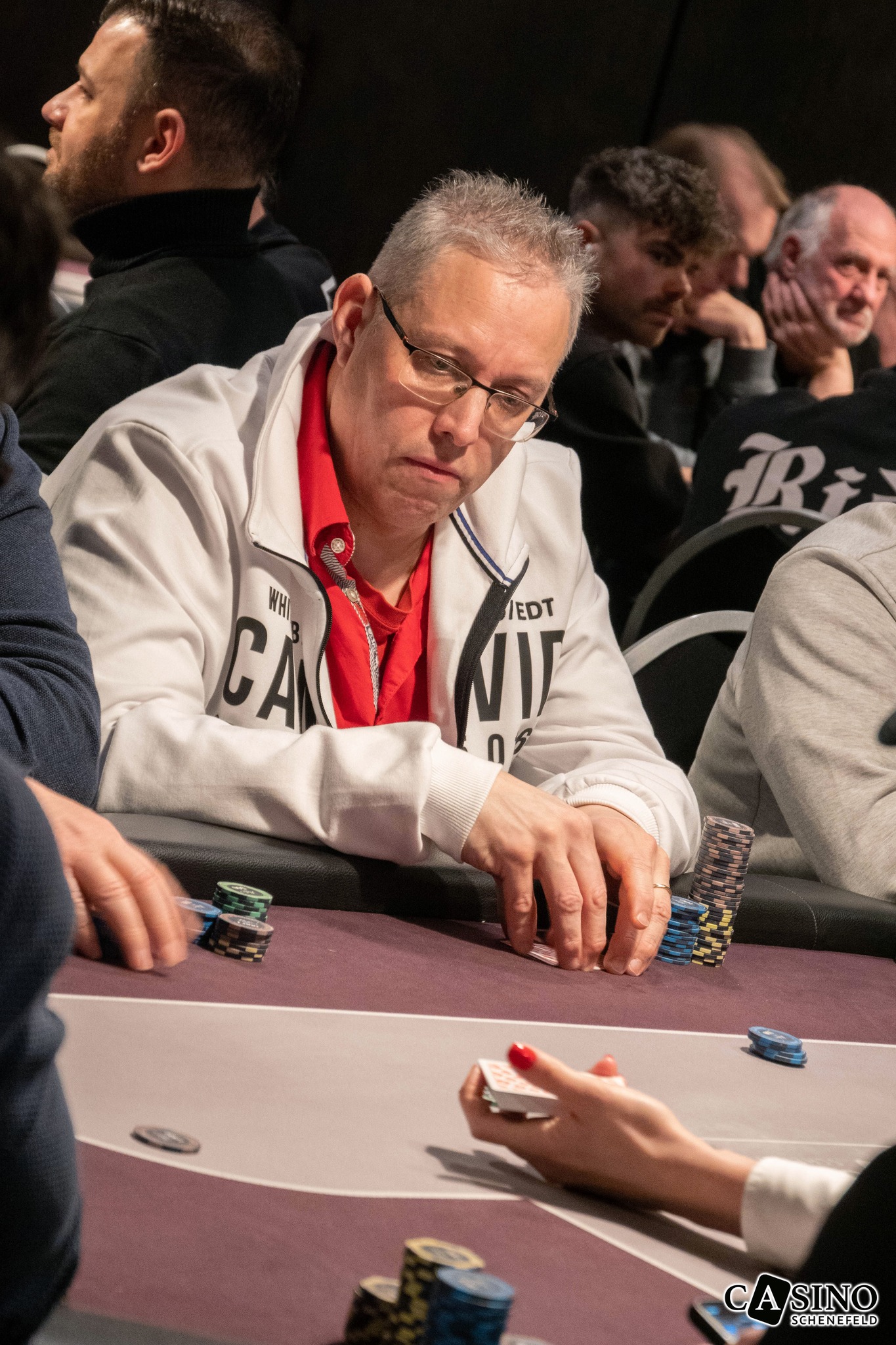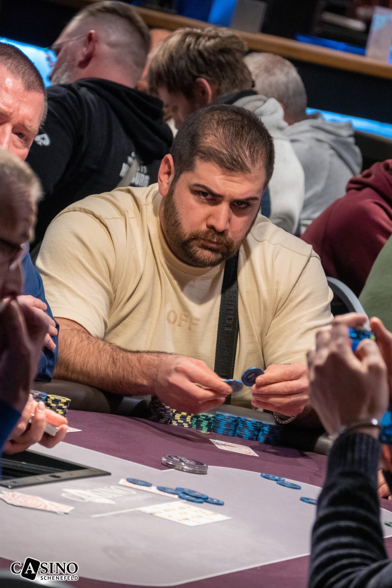 Das 15. und letzte Level bricht an. 42 Spieler*innen sind noch mit von der Partie mit einem Average Stack von 144.047 Chips. Am Ende des Levels dürfen alle Überlebenden ihre Chips für den zweiten von drei Main-Event-Spiletagen (Samstag ab 16:00 Uhr) eintüten.