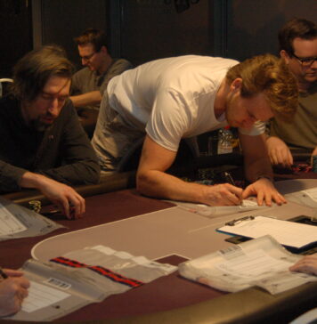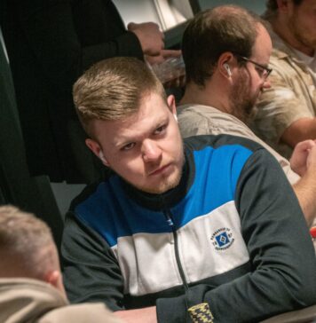Wer hätte das gedacht, dass innerhalb des ersten Levels nach dem Schließen der Late Reg innerhalb von 30 Minuten mehr als ein Drittel des Teilnehmerfeldes bustet. Die letzten 18 gehen bei Blinds 1.000/2.500-2.500 auf die PLO-Zielgerade des Tages: Der Chipaverage von 180.555 bedeutet, dass durchschnittlich mit einem Stack von 72 Big Blinds gespielt werden kann.