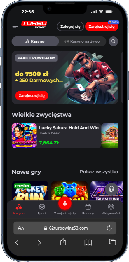 - Turbowinz – 200% do 1000 PLN + 250 DS, unikalne sloty, apka mobilna