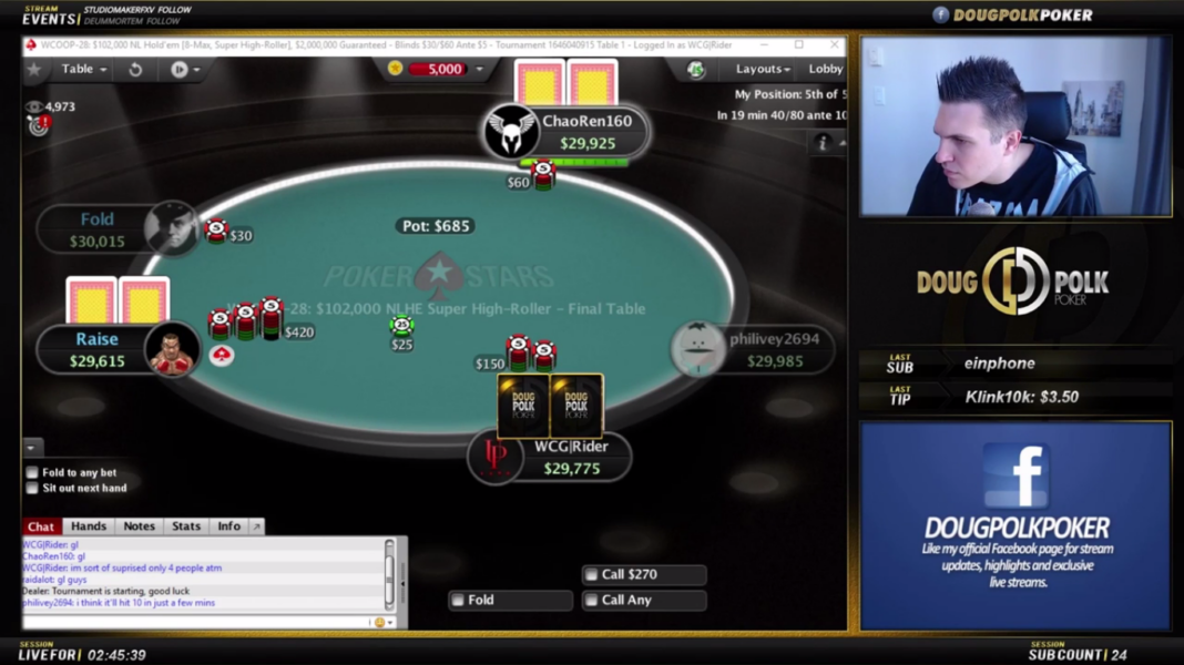 WCOOP 2016 – Doug Polk mit weiteren Händen von seinem Deep Run beim $10k