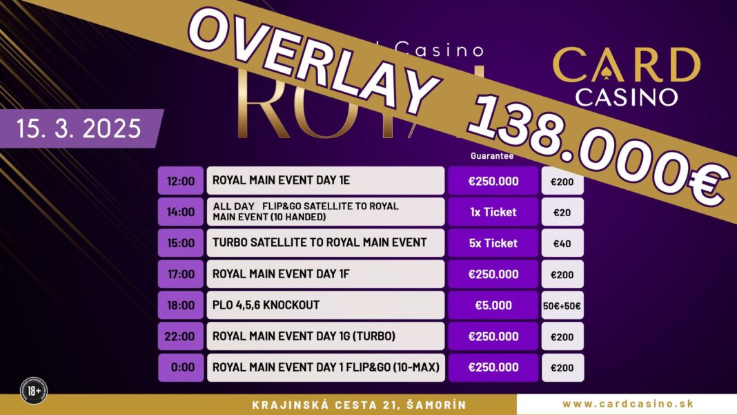 Aktuell noch über €138.000 Overlay beim Card Casino SK Royal Event!