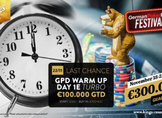Vier Spieler teilen sich den Sieg beim High Noon Turbo im King’s – Donnerstag letzte Chance auf €110.350 GTD beim GPD Warm Up!