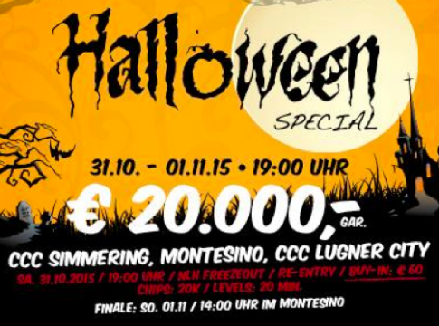 Gestern wurde es gruselig am Pokertisch. Im Montesino Wien stand das Halloween Special auf dem Programm. Um 19:00 Uhr ging es los beim €60 No Limit Hold’em Turnier und einem garantierten Preispool von €20.000. Neben dem Montesino konnte man sich auch im Concord Card Casino Wien Simmering sowie im CCC Lugner City für das Event […]